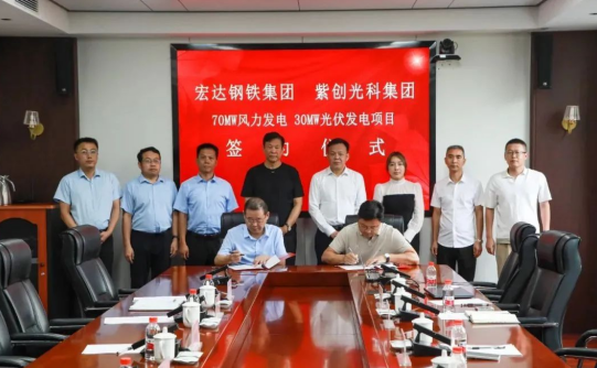 8月24日,宏達(dá)鋼鐵集團(tuán)與紫創(chuàng)光科集團(tuán)舉行70MW風(fēng)力發(fā)電、30MW光伏發(fā)電項(xiàng)目簽約儀式。宏達(dá)鋼鐵集團(tuán)董事長(zhǎng)張會(huì)民,紫創(chuàng)光科集團(tuán)總裁丁立中出席簽約儀式。此次合作標(biāo)志著兩大企業(yè)在新能源與傳統(tǒng)工業(yè)融合發(fā)展領(lǐng)域邁出實(shí)質(zhì)性步伐,將為鋼鐵行業(yè)綠色轉(zhuǎn)型提供示范樣板。