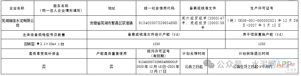 8月29日,安徽省蕪湖市工信局發(fā)布關于安徽海螺水泥股份有限公司白馬山水泥廠水泥熟料生產線產能置換方案的公示。