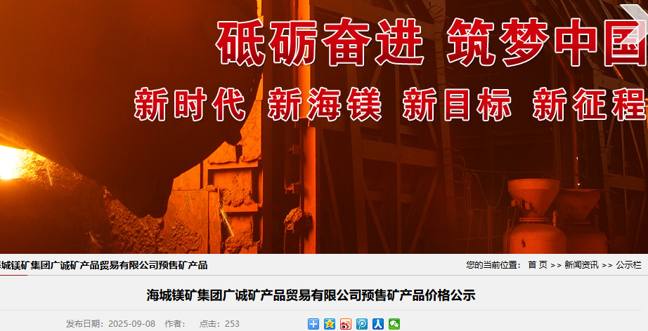 海城鎂礦集團(tuán)廣誠礦產(chǎn)品貿(mào)易有限公司預(yù)售礦產(chǎn)品價格公示