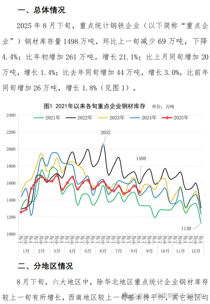 8月下旬重點(diǎn)統(tǒng)計(jì)企業(yè)鋼材庫存旬報(bào)