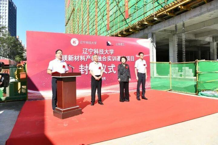 17日上午,遼寧科技大學(xué)菱鎂新材料產(chǎn)教融合實(shí)訓(xùn)基地項(xiàng)目主體結(jié)構(gòu)封頂儀式舉行。