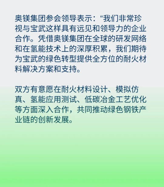聚焦綠色鋼鐵轉(zhuǎn)型:奧鎂集團(tuán)與寶武低碳中心、寶武中央研究院舉行技術(shù)交流會(huì),共探低碳未來