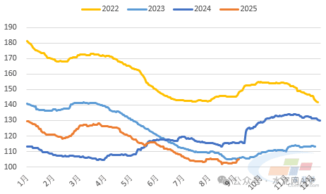 7月份前后,盡管國家層面和行業(yè)協(xié)會均出臺文件指導(dǎo)水泥行業(yè)強(qiáng)化自律和“反內(nèi)卷”,但收效甚微,三季度水泥價格低位震蕩,當(dāng)下已到達(dá)同期較低水平,企業(yè)運營壓力陡增。