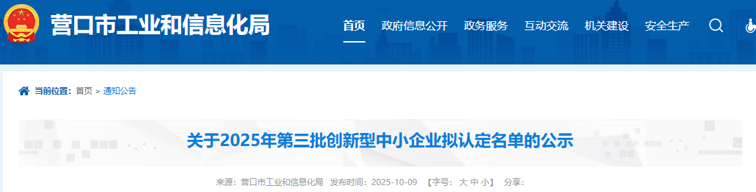按省工信廳《關(guān)于做好2025年度創(chuàng)新型中小企業(yè)申報(bào)工作的通知》要求,經(jīng)企業(yè)登錄優(yōu)質(zhì)中小企業(yè)梯度培育平臺(tái)自愿申報(bào),各縣(市)區(qū)、園區(qū)工信主管部門推薦,營口市工信局初審,擬認(rèn)定營口創(chuàng)巖耐火材料有限公司等7家企業(yè)為2025年第三季度創(chuàng)新型中小企業(yè),現(xiàn)將通過名單予以公示。任何單位或個(gè)人對(duì)公示有異議的,可在公示期內(nèi)與市工信局聯(lián)系。