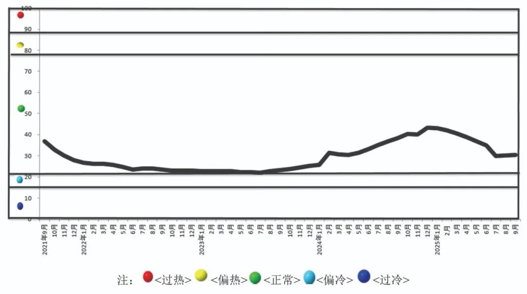 中國有色金屬產(chǎn)業(yè)月度景氣指數(shù)監(jiān)測模型結(jié)果顯示,2025年9月份,中國有色金屬產(chǎn)業(yè)景氣指數(shù)為30.4,較上月上升0.1個(gè)百分點(diǎn);先行指數(shù)70.4,較上月上升0.4個(gè)百分點(diǎn);一致指數(shù)為69.7,較上月下降2.1個(gè)百分點(diǎn)。