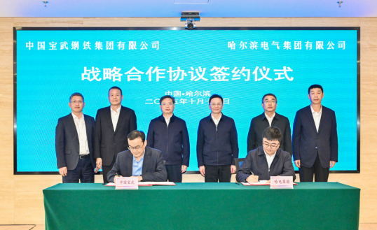 中國寶武黨委常委,寶鋼股份黨委書記、董事長鄒繼新,哈電集團黨委常委、副總經理劉軼代表雙方簽署協(xié)議。中國寶武總經理助理、鋼鐵業(yè)發(fā)展部部長吳彬,董事會秘書、辦公室主任秦鐵漢;哈電股份副總裁陳東石;雙方有關部門負責人參加活動。