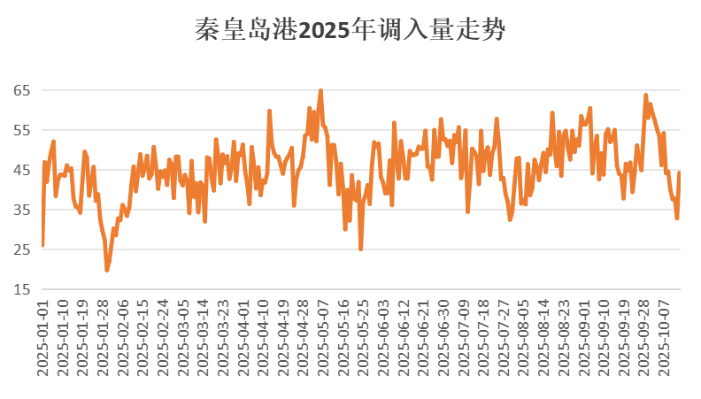 集中檢修首日,大秦線發(fā)運(yùn)量為80.02萬噸,較檢修前正常水平下降約25%,日均運(yùn)力減少約20-25萬噸,導(dǎo)致環(huán)渤海港口煤炭集港量相應(yīng)縮減。歷史數(shù)據(jù)顯示,檢修期間秦皇島港日均調(diào)入量可能降至35萬噸以下,港口庫存將進(jìn)入去化周期。