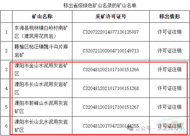 近日,江蘇省自然資源廳發(fā)布關(guān)于將贛榆區(qū)柘汪鎮(zhèn)魏斗溝片麻巖礦等6家礦山移出省級(jí)綠色礦山名錄的公告,其中包含4家水泥用礦山。