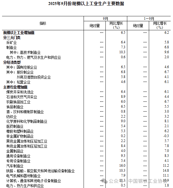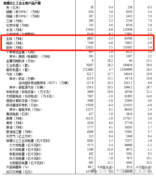 10月20日,國家統(tǒng)計局發(fā)布的數(shù)據(jù)顯示,2025年9月份,我國粗鋼產(chǎn)量7349萬噸,同比下降4.6%;生鐵產(chǎn)量6605萬噸,同比下降2.4%;鋼材產(chǎn)量12421萬噸,同比增長5.1%。