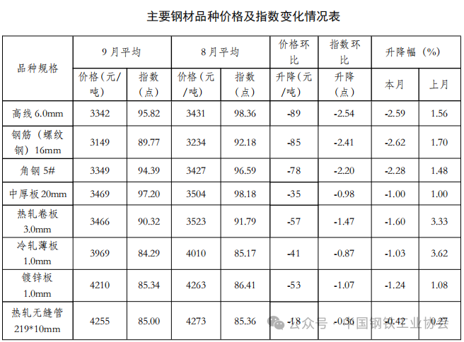 一、9月份國內(nèi)鋼材綜合價格指數(shù)均值環(huán)比有所下降