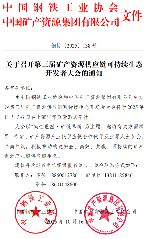 關(guān)于召開第三屆礦產(chǎn)資源供應(yīng)鏈可持續(xù)生態(tài)開發(fā)者大會的通知