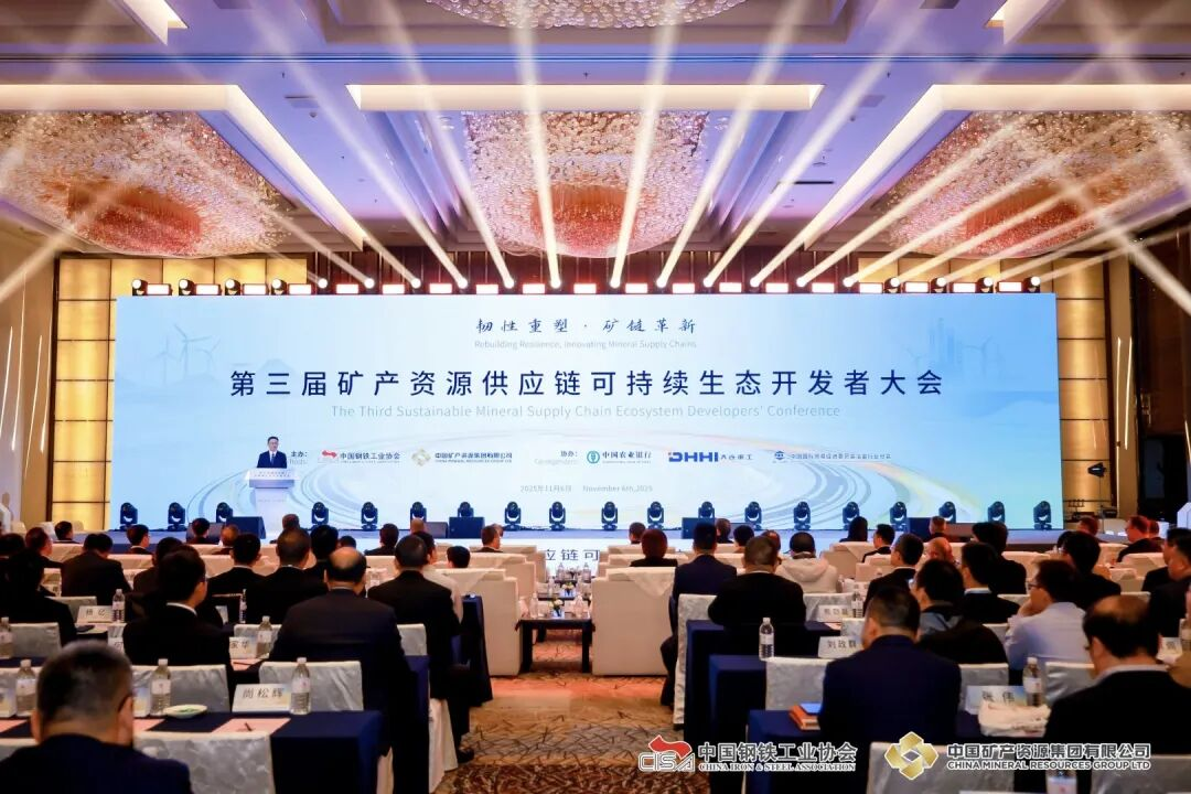 11月6日,第三屆礦產資源供應鏈可持續(xù)生態(tài)開發(fā)者大會在上海召開。大會由中國鋼鐵工業(yè)協(xié)會和中國礦產資源集團聯(lián)合主辦,中國農業(yè)銀行股份有限公司、大連重工裝備集團有限公司、中國國際貿易促進委員會冶金行業(yè)分會協(xié)辦。來自政府部門、行業(yè)協(xié)會,鋼鐵冶金、國際礦山、再生資源、港口航運、金融貿易等行業(yè)企業(yè)和研究機構的近400名中外嘉賓和專家學者參會,圍繞“韌性重塑·礦鏈革新”主題,共商共謀礦產資源供應鏈發(fā)展之路。