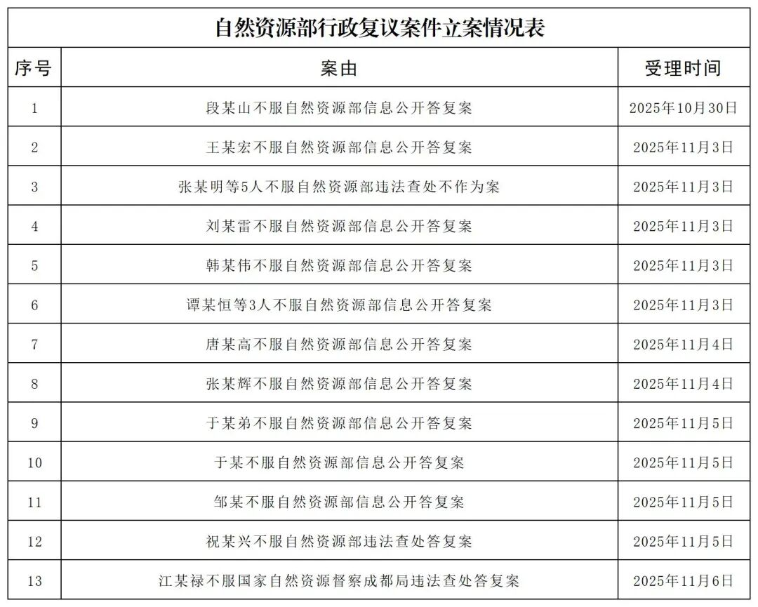 自然資源部行政復(fù)議案件立案情況表