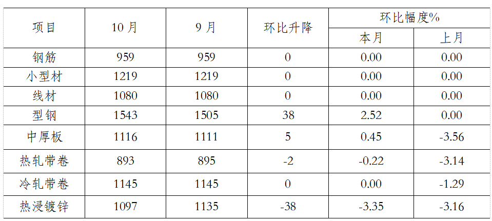 一、10月份國(guó)內(nèi)鋼價(jià)指數(shù)均值環(huán)比繼續(xù)下降