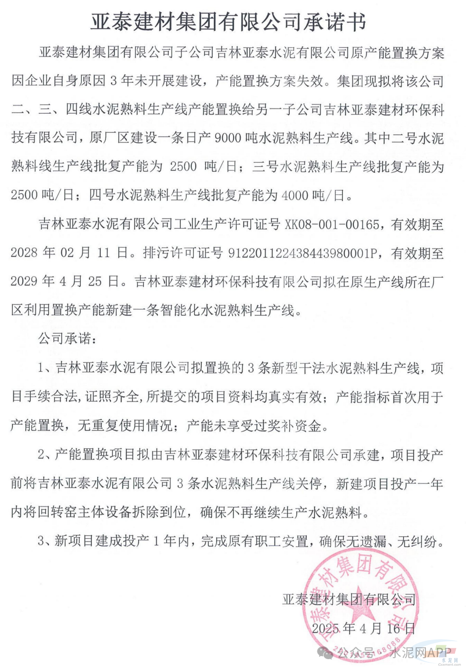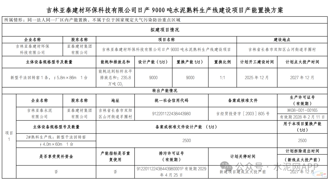 4月30日,吉林省工信廳發(fā)布《關(guān)于對(duì)亞泰建材環(huán)保科技有限公司日產(chǎn)9000噸水泥熟料建設(shè)項(xiàng)目產(chǎn)能置換方案的公示》?!豆尽凤@示,吉林亞泰建材環(huán)保科技有限公司將1:1等量置換建設(shè)一條9000t/d熟料生產(chǎn)線。